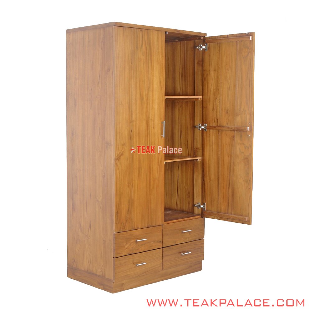 Lemari Pakaian Minimalis 2 Pintu dan 4 Laci Kayu Jati Solid Warna Golden Teak